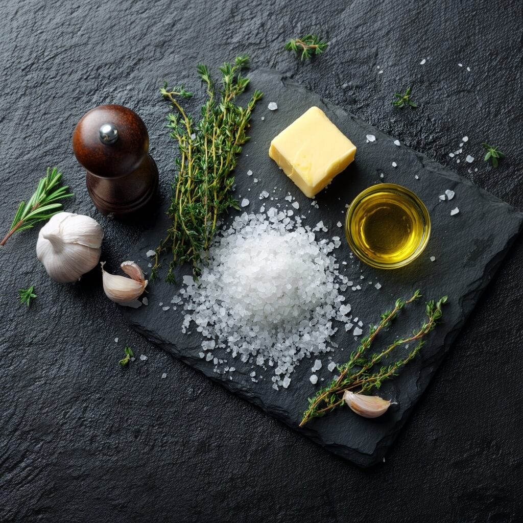 In dünnen Tranchen auf schwarzem Stein oder dunklem Teller anrichten Mit Fleur de Sel bestreuen Dazu: geröstetes Brioche, konfierte Schalotten oder fermentierte Senfkörner
