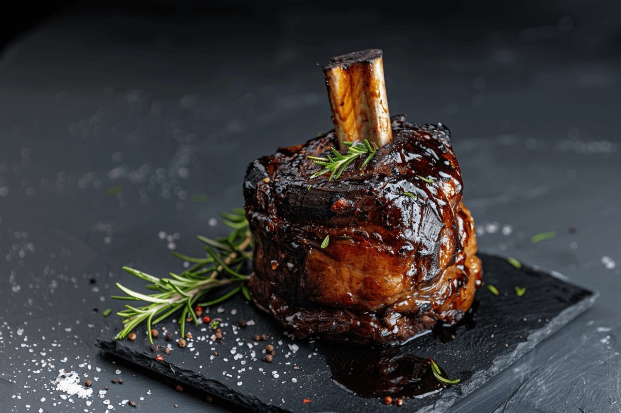 Der Beef Hammer ist nicht nur optisch ein Highlight, sondern überzeugt auch geschmacklich auf ganzer Linie. Geschnitten aus der Rinderwade und mit Knochen zubereitet, bleibt er besonders saftig und eignet sich ideal für lange Garzeiten. Die feine Marmorierung des Fullblood Wagyu sorgt für intensives Aroma und eine zarte Textur. Perfekt für besondere Anlässe oder wenn Sie Ihre Gäste beeindrucken möchten.