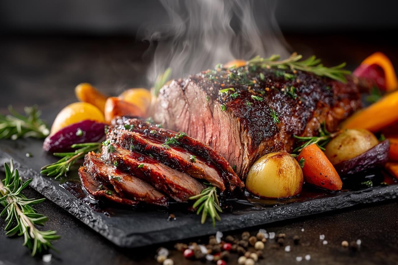 20 Stunden bei 65 °C – danach glasieren oder grillen.