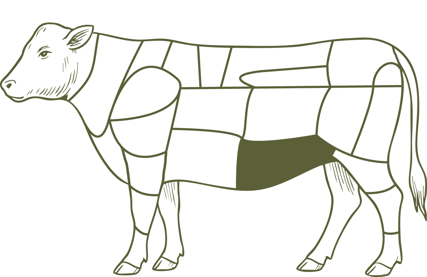 Aus der Dünnung („Bauchlappen“) – kräftiger Geschmack, lockere Fasern, in Frankreich als Bavette geschätzt.